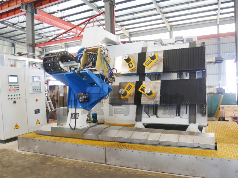 工作方式:斜立式結構,橫梁上掛載2組感應器,感應器伺服移動定位,感應器自動找工件間隙,淬火時自動跟蹤;工件四點式定位,自定心裝夾,工作臺伺服旋轉、無間隙分度。